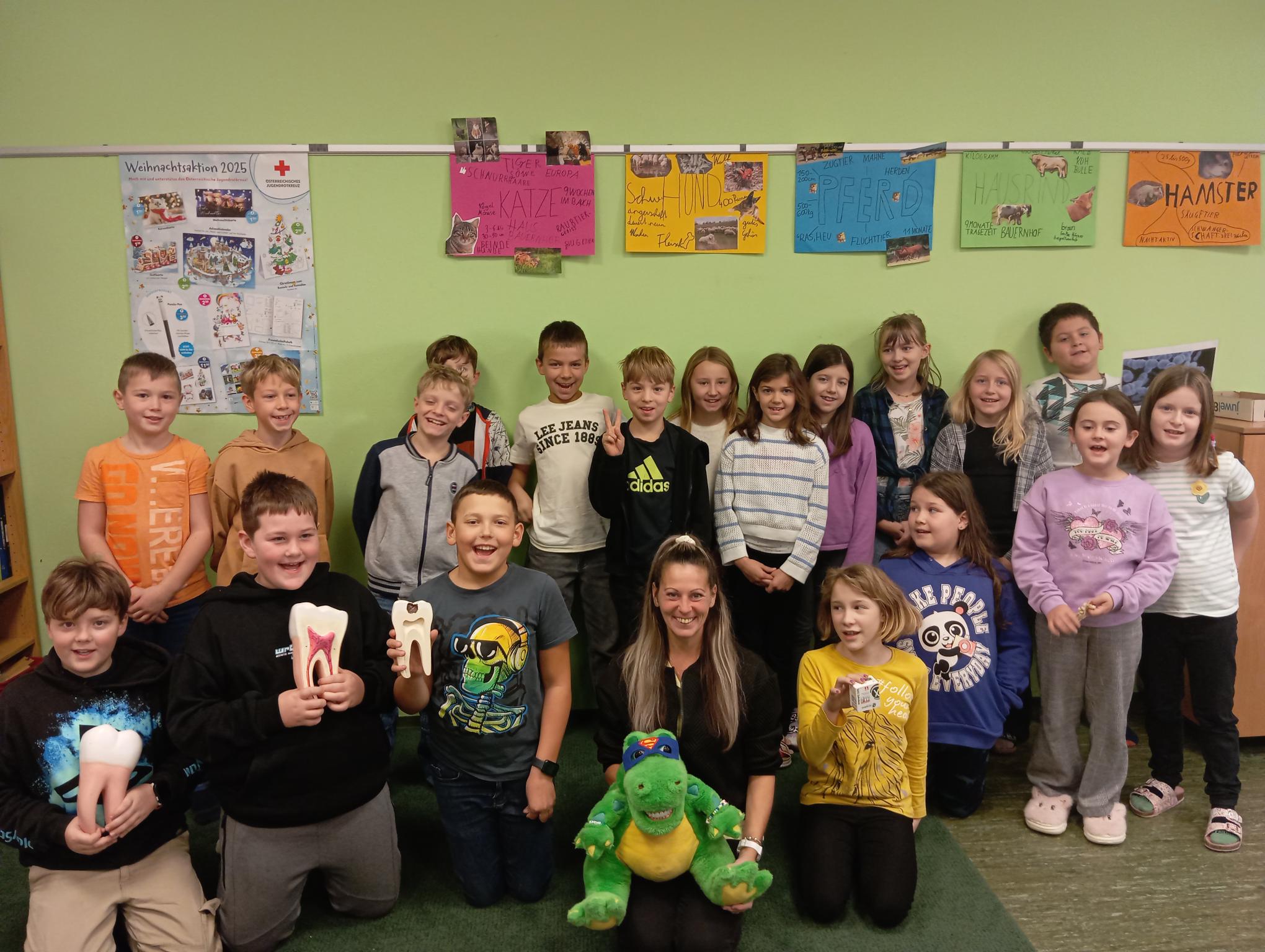 Das Zahnputzkrokodil Kroko war zu Besuch! Gemeinsam mit einer Zahnfachkraft zeigte Kroko den Kindern, wie wichtig regelmäßiges und richtiges Zähneputzen ist.