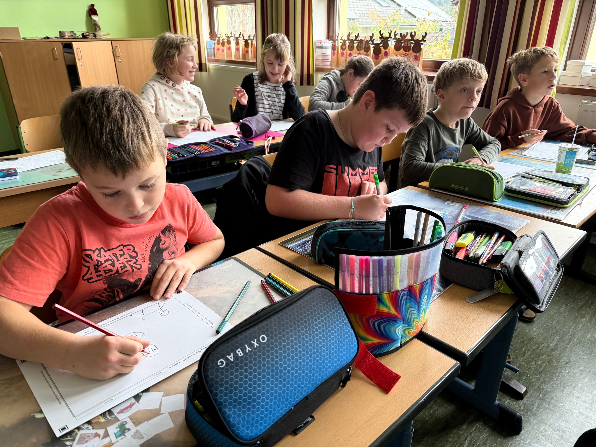 An besonderen Kunstwerken arbeitet unsere 1. und 2. Schulstufe.