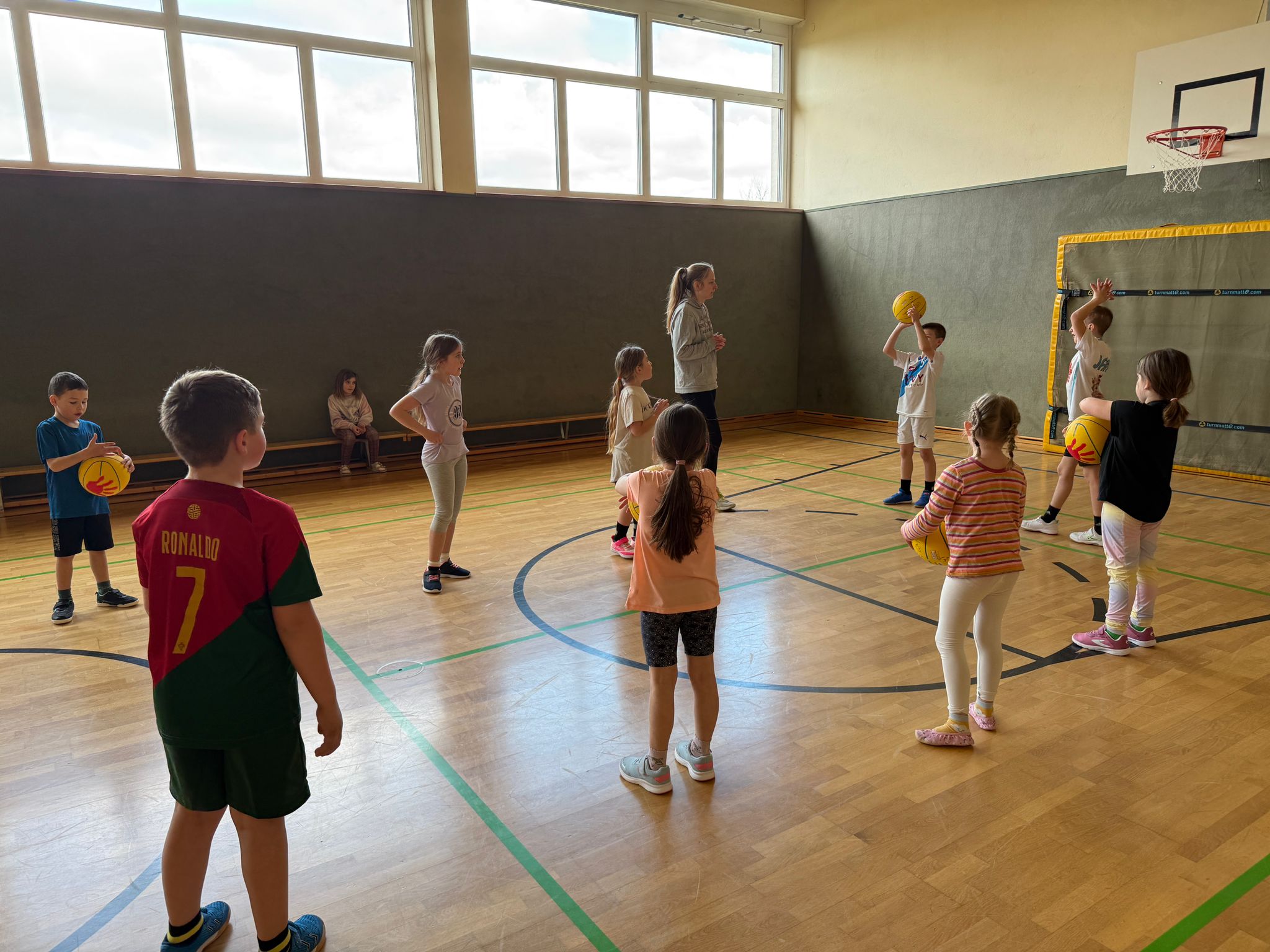 Eine Basketballtrainierin des UBBC Gmünd besucht uns im Sportunttericht.