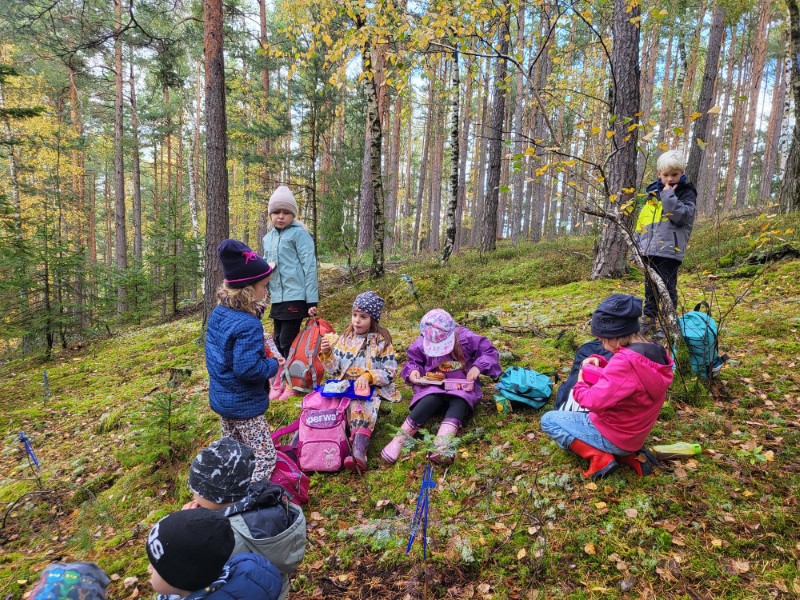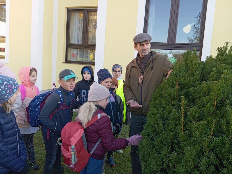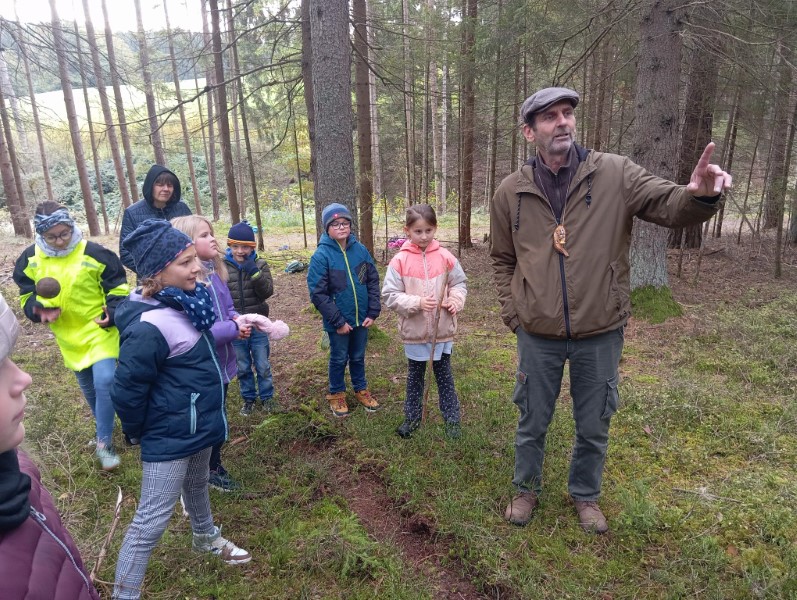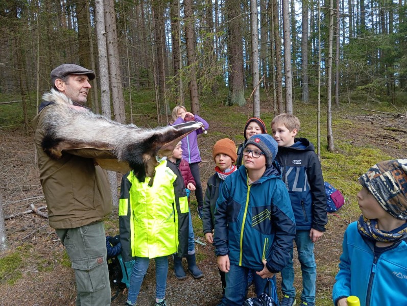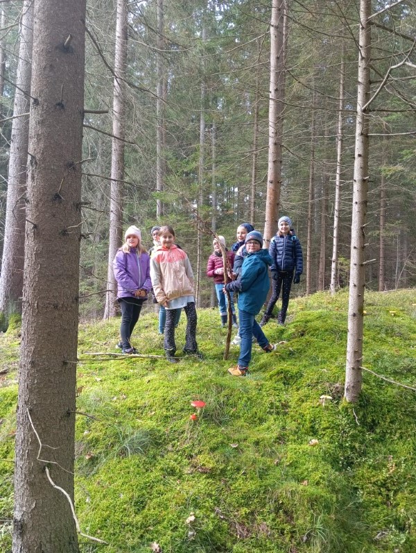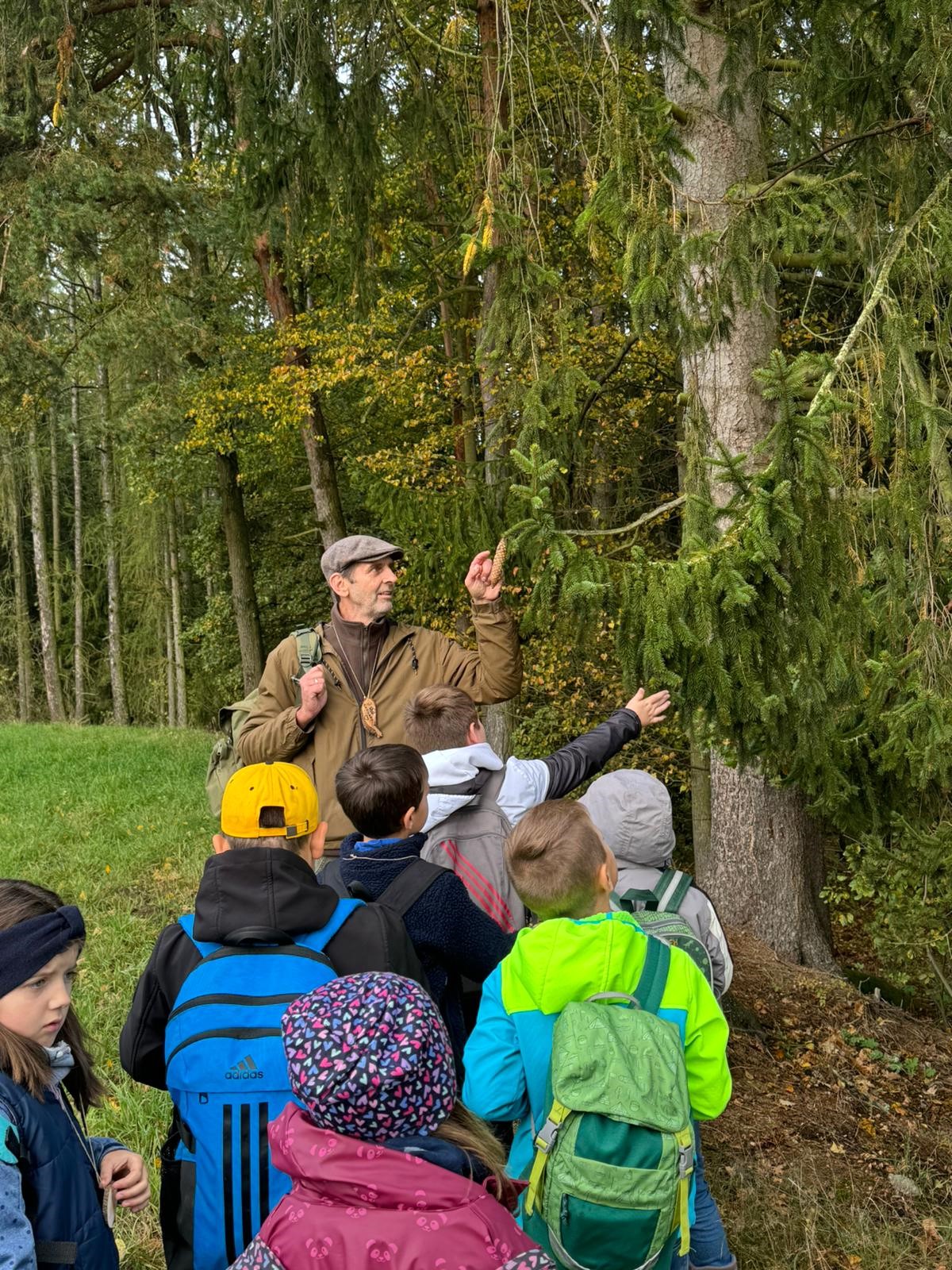 2024-10-15 | Die Kinder verbrachten einen lehrreichen Vormittag im Wald. Die beiden Waldpädagogen Gerhard und Johann konnten auf spielerische Art und Weise viel Wissen vermitteln. So bauten die Kinder Kugelbahnen aus Naturmaterialien, malten mit Naturmaterialien, lernten verschiedene Bäume kennen und sammelten nebenbei noch Pilze - ein großer Spaß!