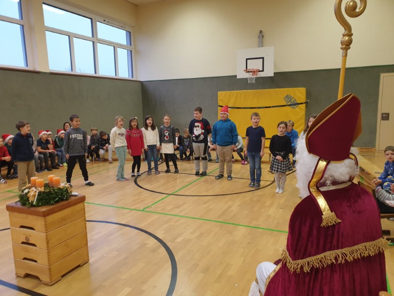 2024-12-06 | Der Nikolaus wurde mit Gedichten und Liedern begrüßt. Im Anschluss verteilte er Nikolaussäckchen an die Kinder - eine große Freude!