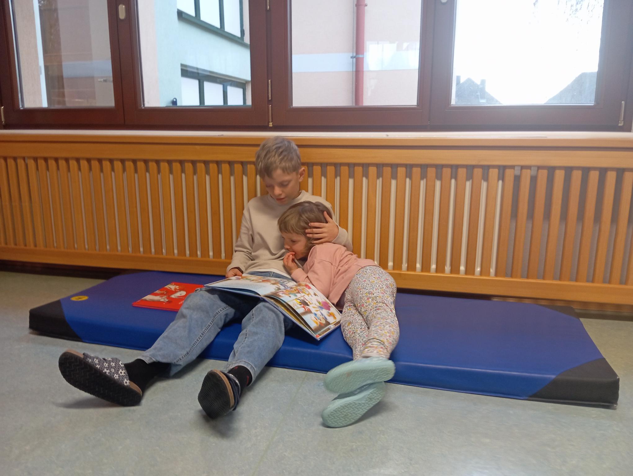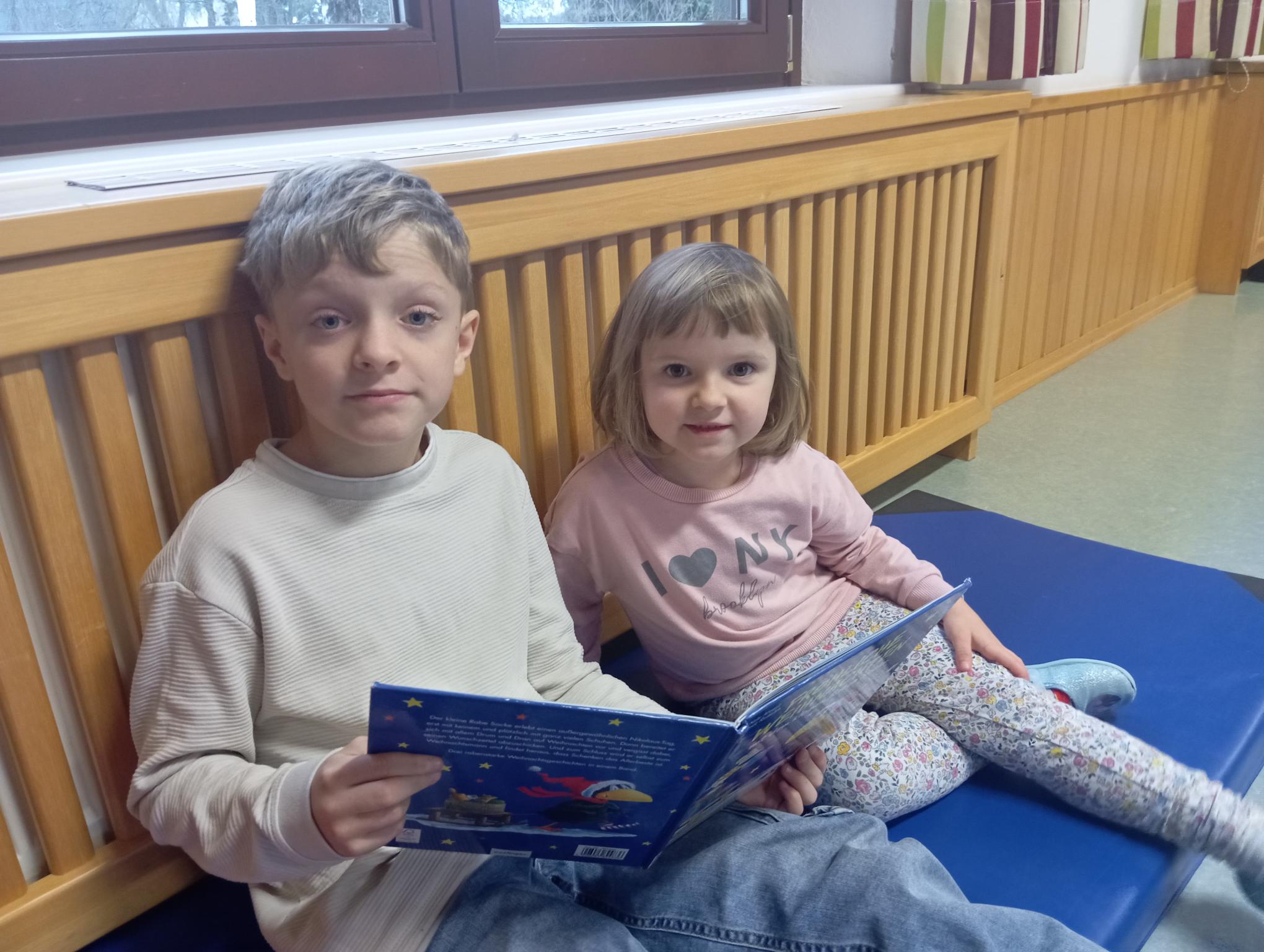 Einen besonderen Vormittag verbrachte die 4. Schulstufe im Advent im Kindergarten. Jede*r unserer Schüler*innen brachte an diesem Tag ein Buch in den Kindergarten mit, welches den Kindern vorgelesen wurde.