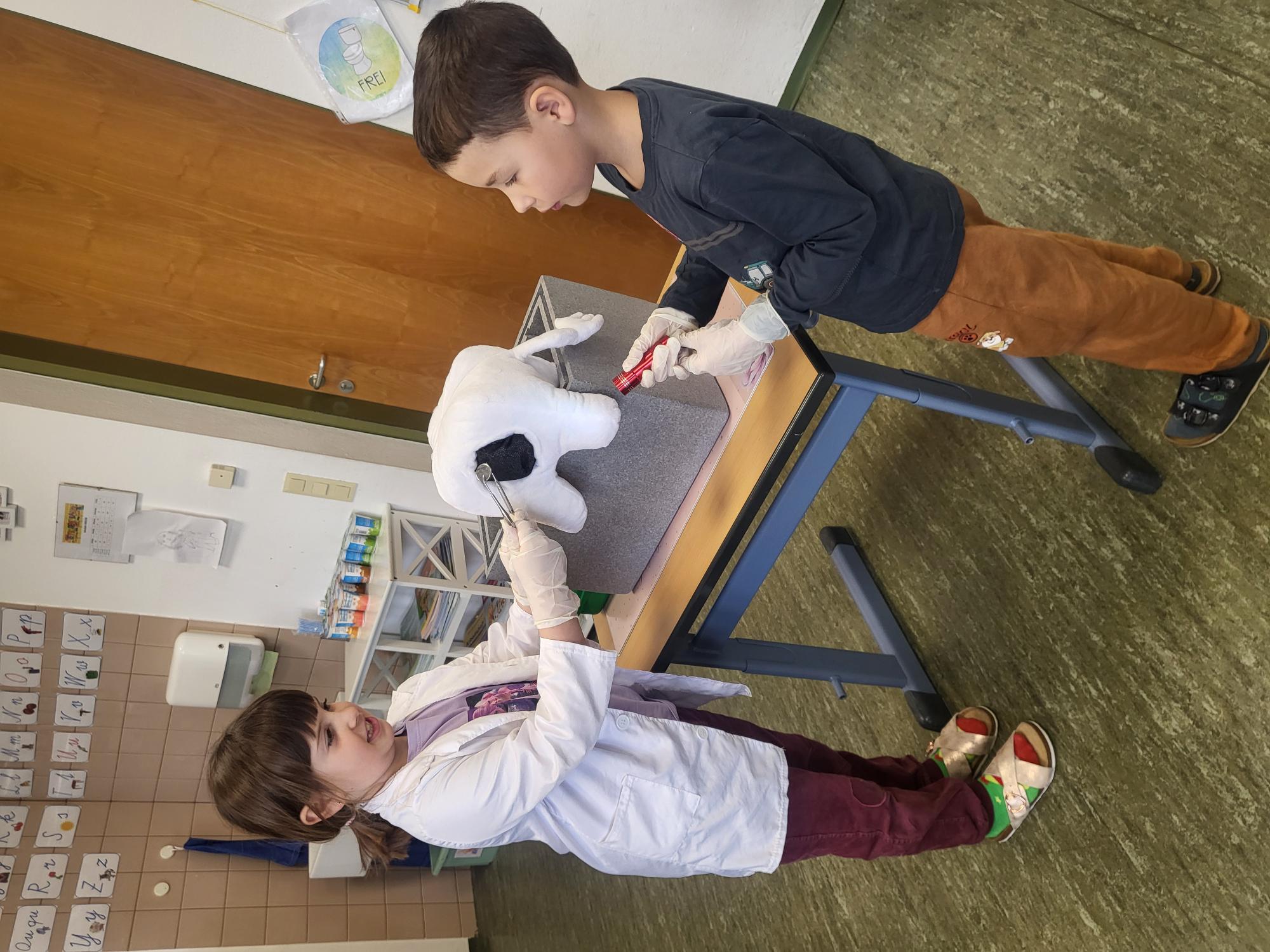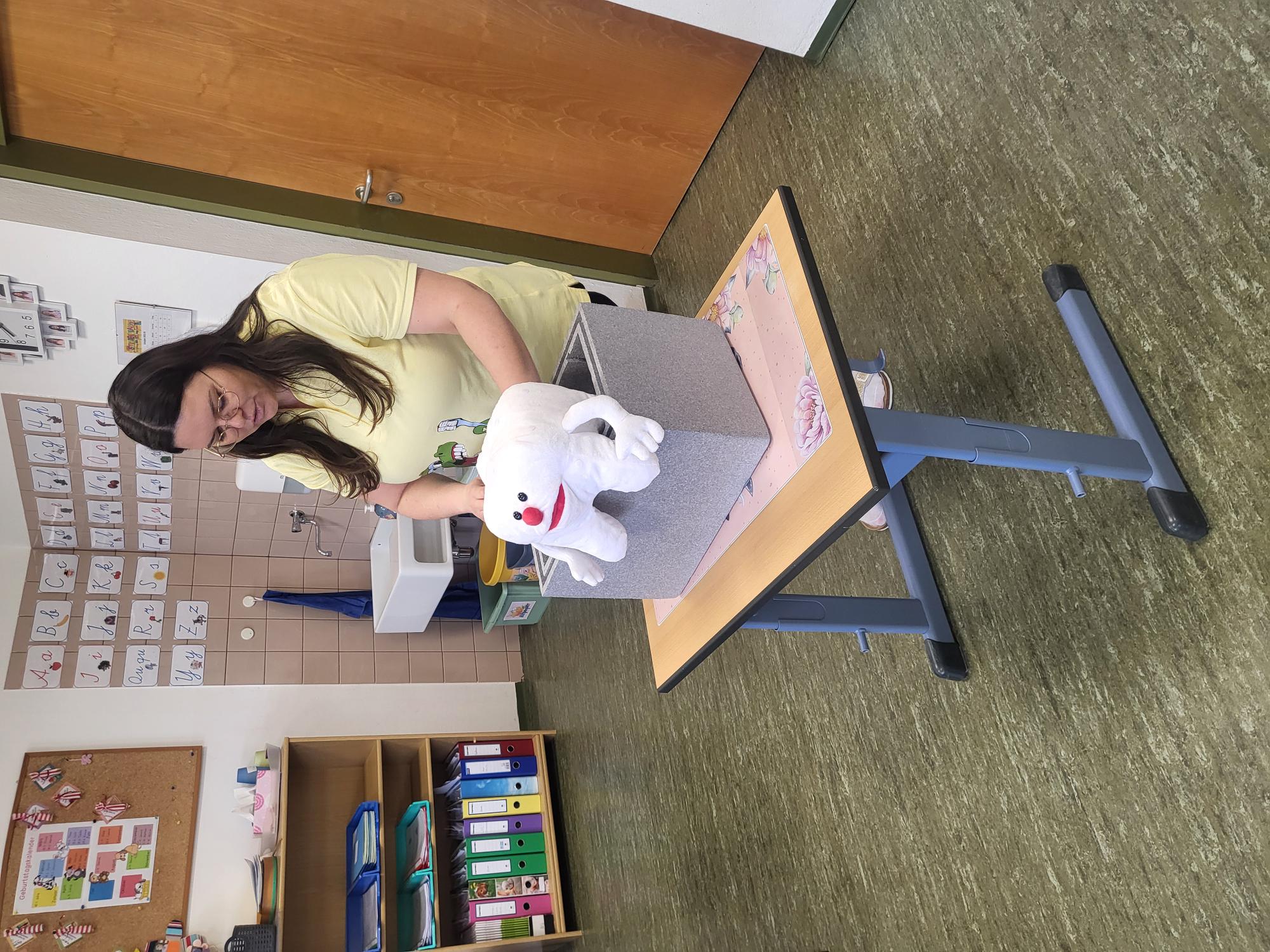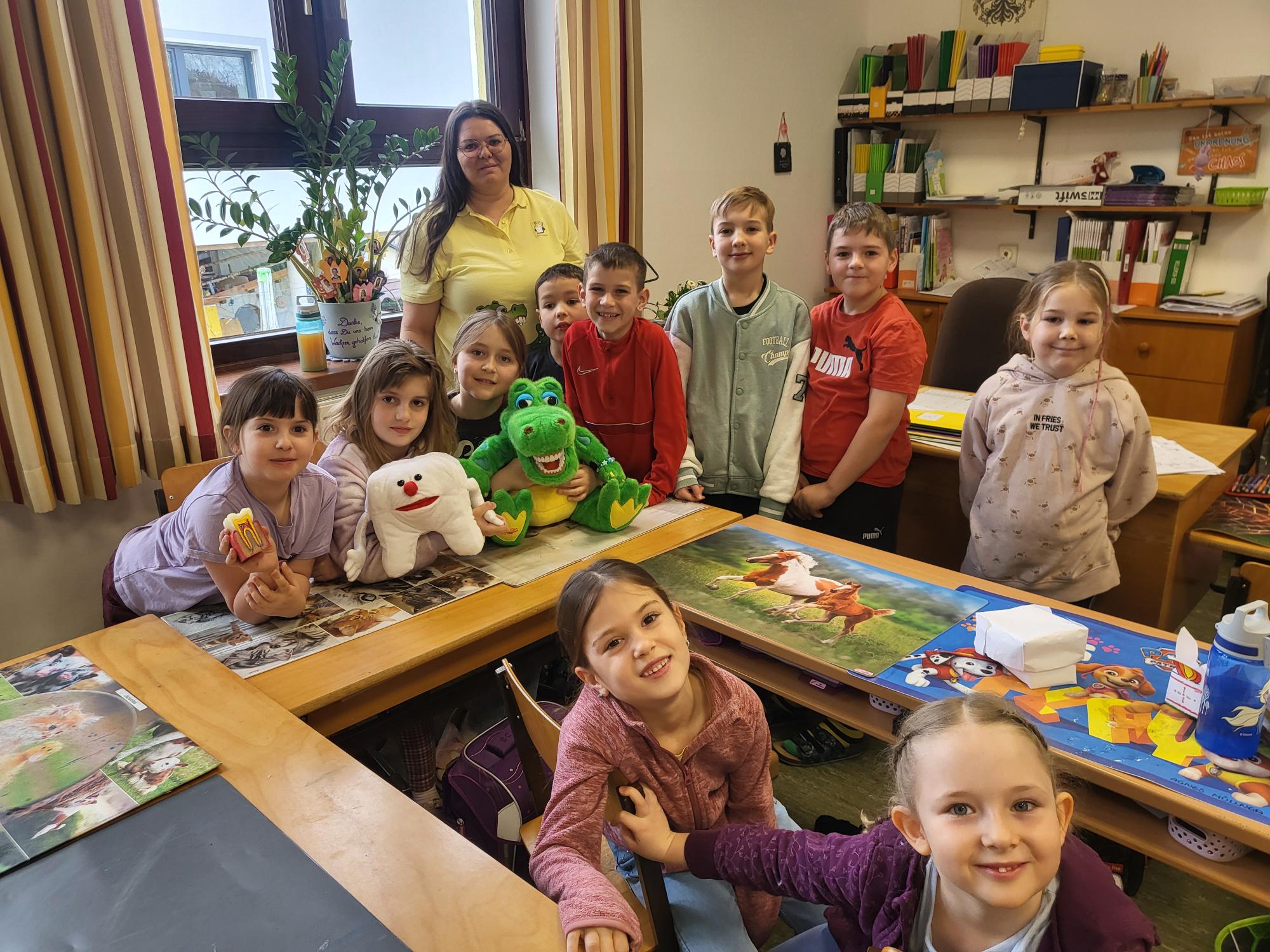Kurz vor den Osterferien besuchte uns Kroko das Zahnputzkrokodil.