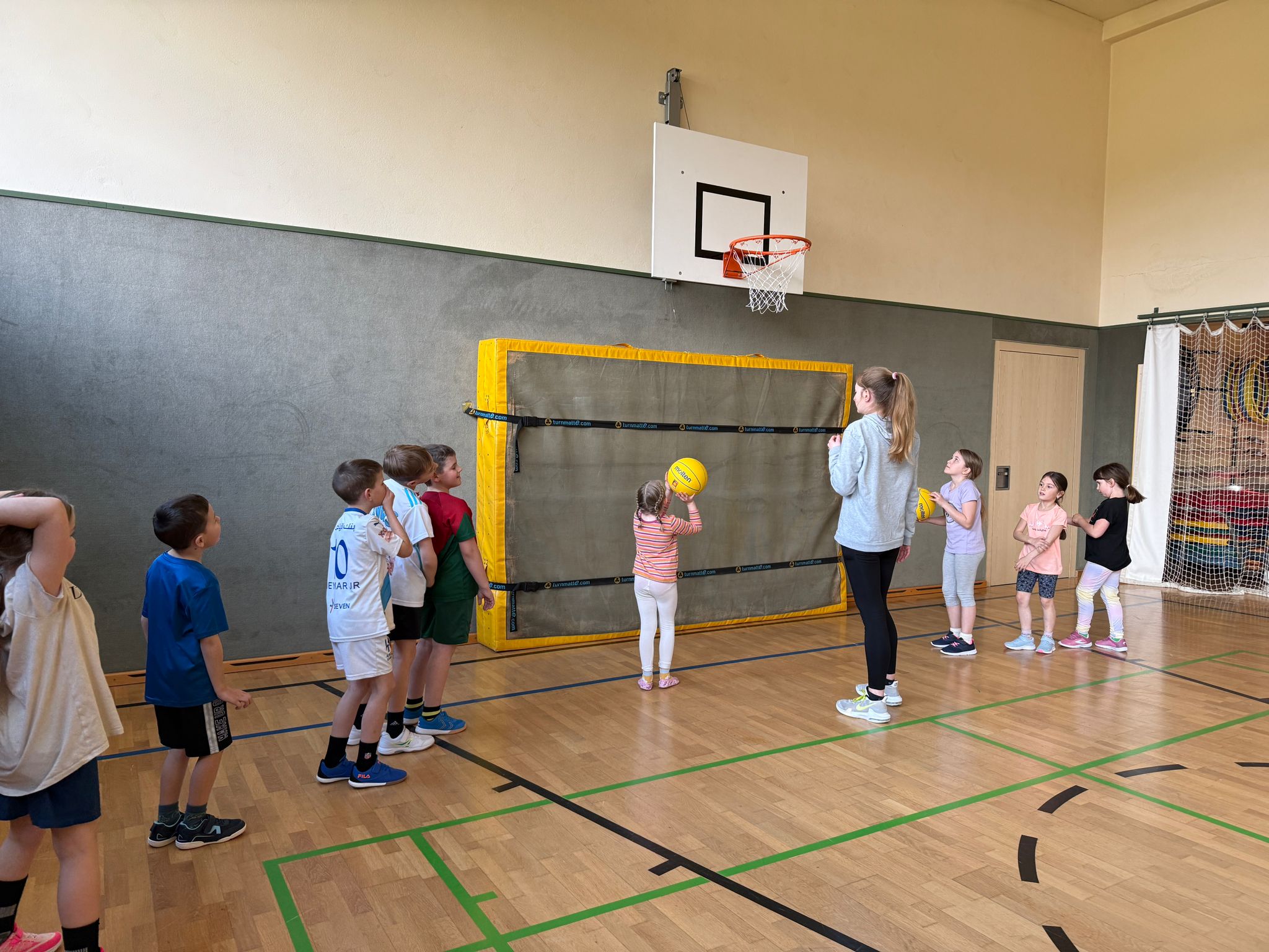 Im Rahmen einer Kooperation mit dem UBBC Gmünd gestaltetet die professionelle Basketball-Trainerin Lea Koppensteiner Schnupperstunden im Sportunterricht unserer Volksschule. Lea Koppensteiner zeigte den Kindern motivierende Übungen, die sie auf das Basketball-Spiel vorbereiten. Auf spielerische Art und Weise wurden die Grundlagen des Zusammenspiels vermitteln.